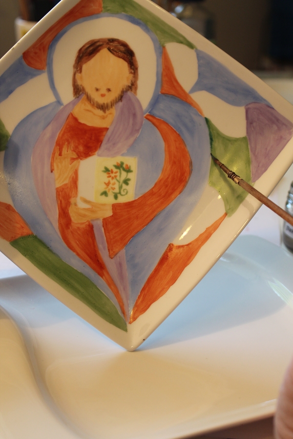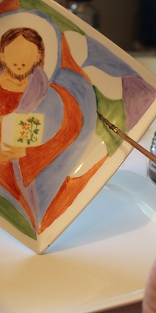 3. Wenn mir die aufgemalten Farben gefallen, wird das Stück zum ersten Mal bei niederigen Temperatur fixiert (die sogenannte Anlage).